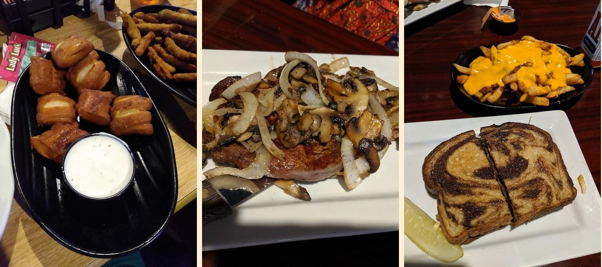 The Stadium Bar & Grill offers a range of popular dishes. Favorite appetizers include Nacho Grande and Chicken Gizzards. For burgers, try the Stadium Burger or Mushroom Swiss Burger. Don't miss the Root Beer Float for dessert.